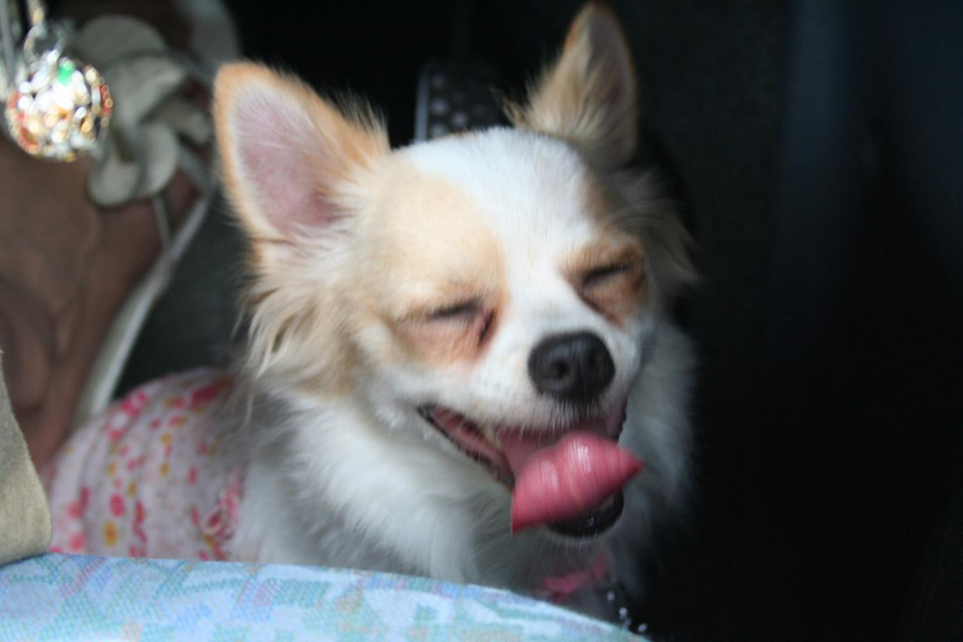 は~は~言っちゃってるし、チビッ子達に振り回されるカンチンとコムチンも大変だけど、遊びたいのにうまく遊べないチビッ子たちにも悪い気がしちゃって。。。ホントは波打ち際で遊んだりさせてあげたかったんだけど。。。まあ、また人の少ない、比較的涼しい時間に連れて行こうと思います。という訳で帰りの車内でパチリッ★