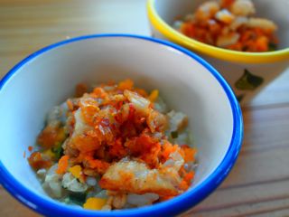 鶏団子をボイルしたお湯と豆乳でアスパラ入りのおじやに。