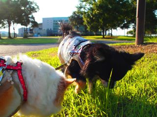 ブラタンのコパン(愛称かんちゃん)とホワイト&フォーンのコムギ。コブタぢゃありません(笑)ロングコートチワワなヤツラです★