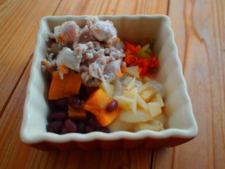 かぼちゃやお豆が多いので、お米は無し。