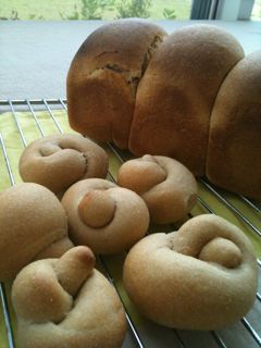 全量そば粉のこの生地は、焼く前にお砂糖や蜂蜜等の糖分を少し加えますが、人間用もお水だけで溶きます。
