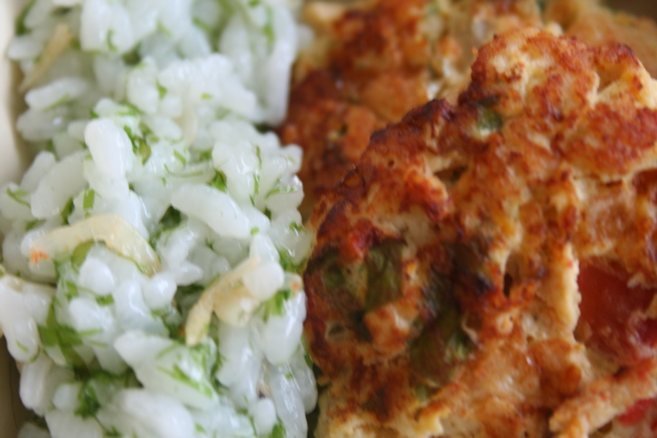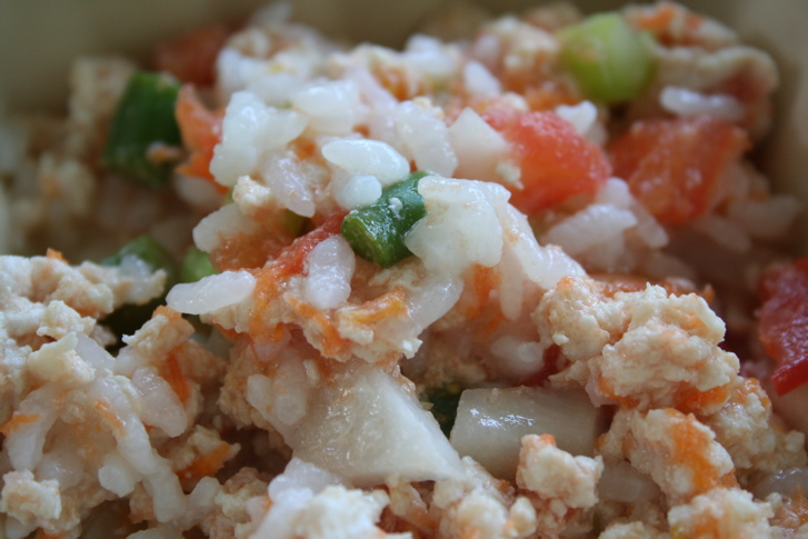 (鶏ミンチ、きゃべつ、ピーマン、にんじん、白米、青のり)