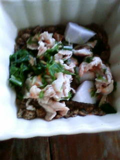 (大根葉、里芋、人参擦りおろし、生姜擦りおろし、豚肉、昆布出汁)