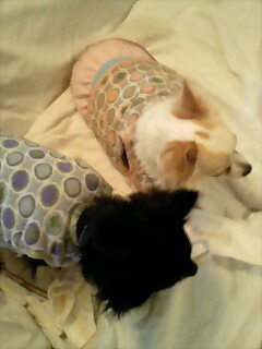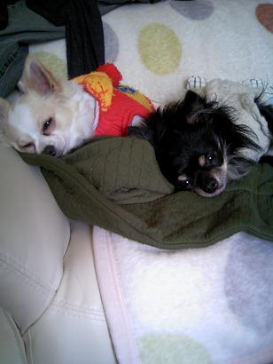 ブラタンのコパン(愛称かんちゃん)とホワイト&フォーンのコムギ。コブタぢゃありません(笑)ロングコートチワワなヤツラです★