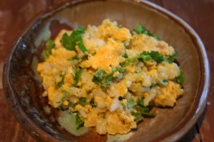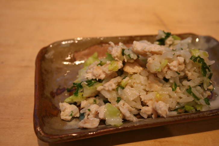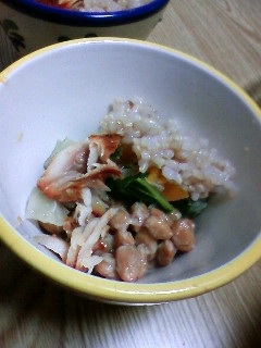 昨夜のおじやをベースに鶏ミンチをいれたところ、、、