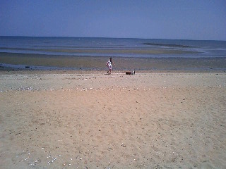 ちょうど引き潮の時で、めっちゃひいていたので、いつもは波を恐がるカンチンも大はしゃぎ!!