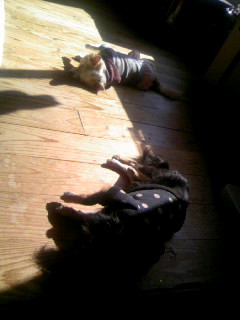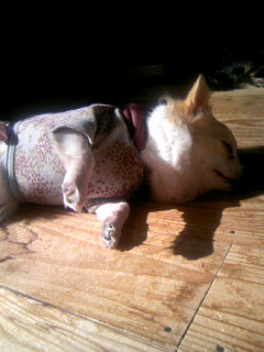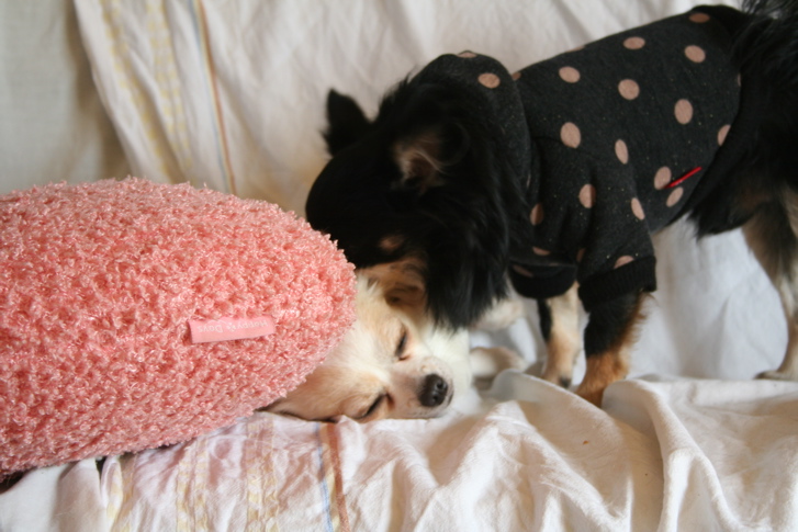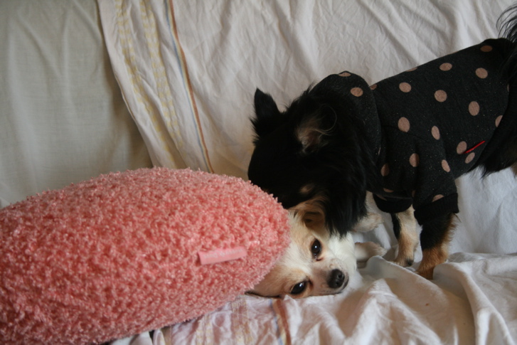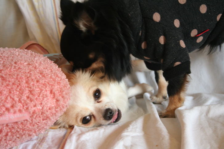 ブラタンのコパン(愛称かんちゃん)とホワイト&フォーンのコムギ。コブタぢゃありません(笑)ロングコートチワワなヤツラです★