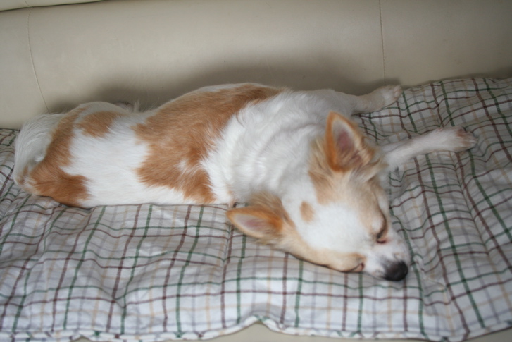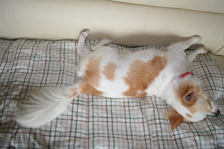 以前はカンチンのビヨ〜ンと伸ばして寝る後ろ足について書きましたが、今回はコムチン。