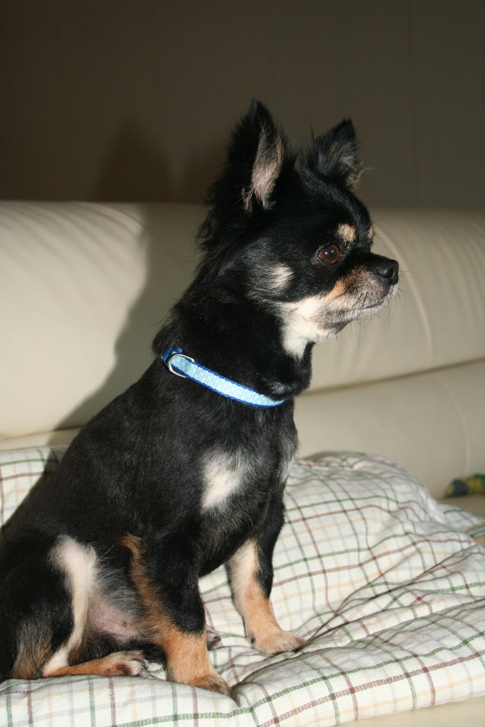 前回の記事へ「Rock’n チワワ☆ナポレオン」のたまらんかわいさなナポくんのママ、まりも☆さんに頂いたコメントでコムの柄についてふれて頂きましたが、コムはこんな太さ牛柄模様。