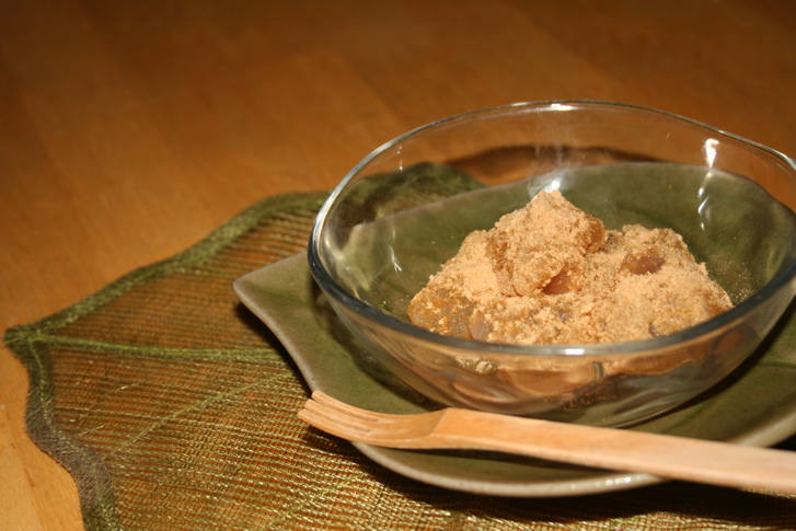 人間用は葛餅にもきな粉にもお砂糖入りです。