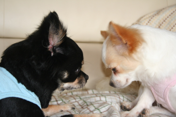 ブラタンのコパン(愛称かんちゃん)とホワイト&フォーンのコムギ。コブタぢゃありません(笑)ロングコートチワワなヤツラです★
