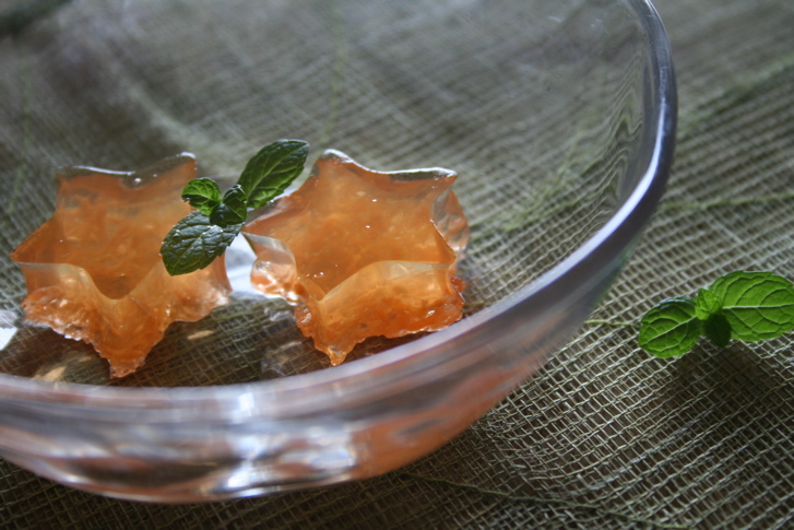 冷蔵庫で冷やし固めた後、星形で抜きました。
