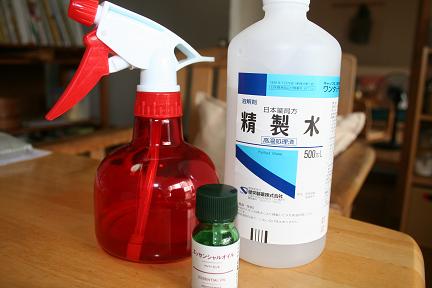 100ccの精製水にエッセンシャルオイルを10~20滴いれます。
