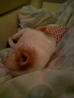 そんなtono不在の夜、いつもはケージで眠るカンコムと一緒にリビングにお布団を持って来て寝るのが決まり事になっています。