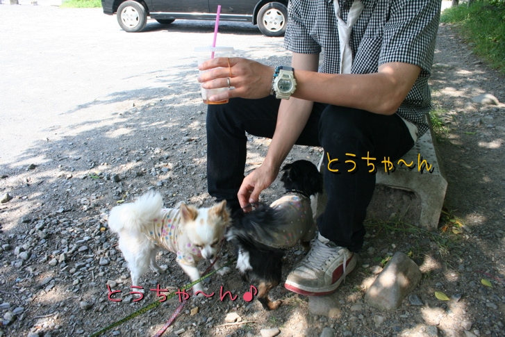 ワンコにミネラルウォーターはよくないと言う説もありますが、せっかくだったので、少しだけだし、カンコムも冷たくて美味しいお水を飲みました♪