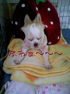 カンチン、頭に葉っぱが乗ってます〜♪たぬきさんだね♪