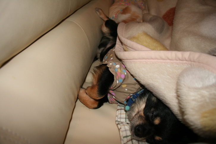 ブラタンのコパン(愛称かんちゃん)とホワイト&フォーンのコムギ。コブタぢゃありません(笑)ロングコートチワワなヤツラです★