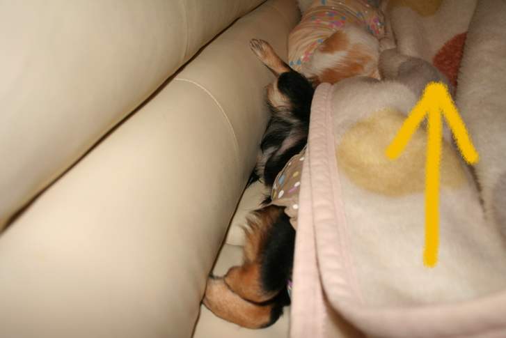 私がソファで矢印の方向に伸びて寛ぐと、ヤツラは必ずやってくる。