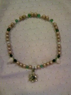 パールやキラキラした素材のものを使ったものにしたいと思ってて、自分のブレスレットをリサイクルしてイメージ作りしたものです。