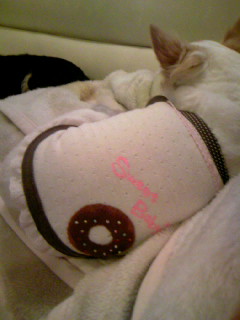 こんな感じになる予定です。フェルトのドーナツをアップリケしてます。