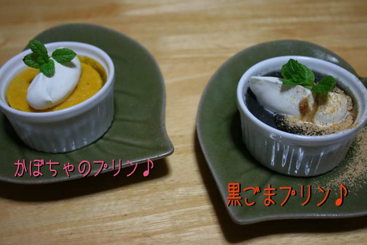 カボチャの方は蒸し時間が10分程(これでも蒸しすぎたかなぁ〜って程です)、黒ごまは20分程です。表面が均等にプルプルしてたら、蒸し上がりナノで、それを目安にした方がいいかも〜。