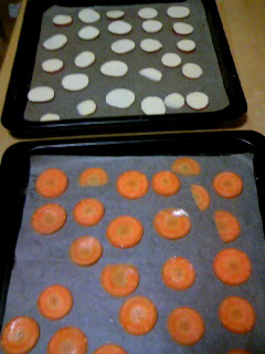 今日は、吉岡油糧で買ったオヤツが無くなったので、お野菜チップスを作りました。