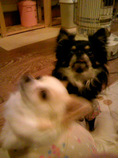 ブラタンのコパン(愛称かんちゃん)とホワイト&フォーンのコムギ。コブタぢゃありません(笑)ロングコートチワワなヤツラです★