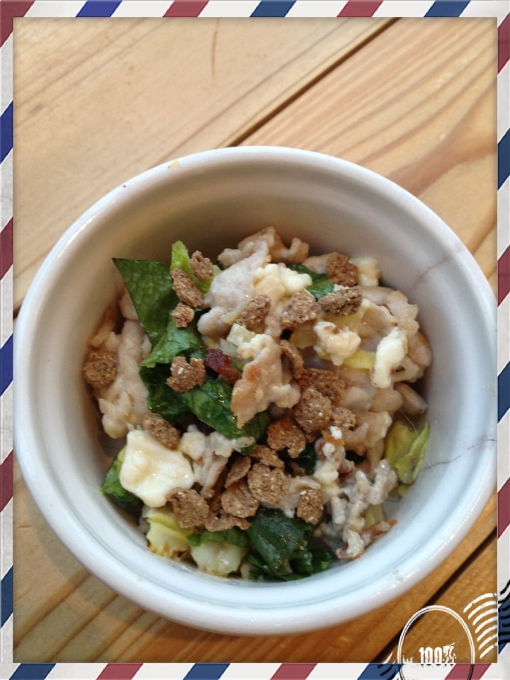 ロメインレタスと、パリパリに焼いた蓮根をトッピング♪( ´▽`)
