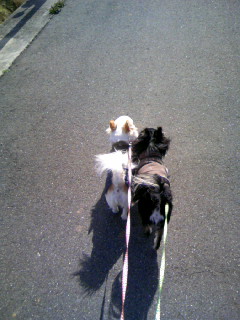 ヒートの間、パワーを持て余していたカンチンは強風にも負けず、いつになくドンドンあるいて楽しそう。お花の香りを嗅いでみたり、気持ちよさそうにお散歩できました。一方、コムチンはまだ本調子じゃないせいもあったか、重い足取りなのでした。