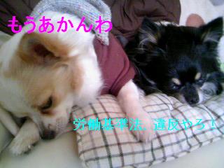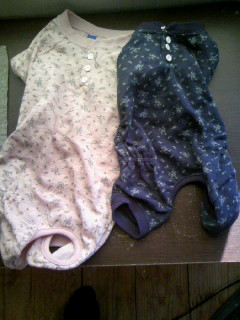 そんなカンコムに、先日りえちゃんとペッパラに行く機会があり、パジャマを買いました。でもこれだけでは寒いと言うので(震えてアッピール)愛用のちゃんちゃんこを着て眠る二人なのです。