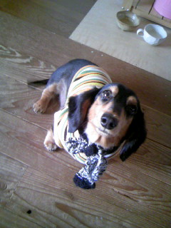 「あっ!遅ればせながら、僕ギブソンって言います。普段は母屋で暮らしてます。デッカイけどミニチュアなんです。。。エヘへ。1番年上のおにいちゃんです。なのでお利口せんですよ。」
