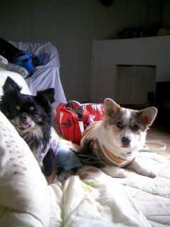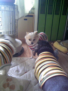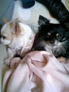 ブラタンのコパン(愛称かんちゃん)とホワイト&フォーンのコムギ。コブタぢゃありません(笑)ロングコートチワワなヤツラです★