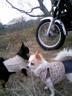 この寒いのに、「バイクで!」とtonoがダダをこねるので(笑)カンコムを毛布に包み、いざ出発!!・・・といってもバイクで10分ほどの場所。