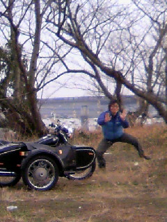 バイクの向こうでドスコイしてます。しかし、何故ドスコイ?!(苦笑)