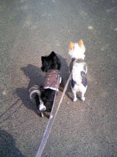 「仲良く寛ぐおフタリさん!さあさ!まずは長めのお散歩だよ〜!日頃の運動不足を解消しなくちゃ!」