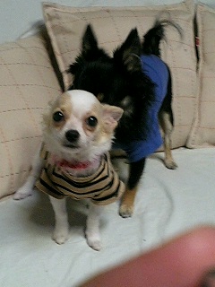 ブラタンのコパン(愛称かんちゃん)とホワイト&フォーンのコムギ。コブタぢゃありません(笑)ロングコートチワワなヤツラです★