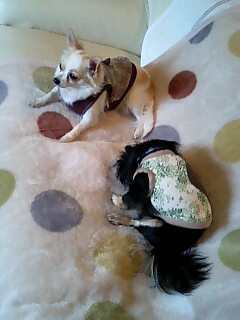 ブラタンのコパン(愛称かんちゃん)とホワイト&フォーンのコムギ。コブタぢゃありません(笑)ロングコートチワワなヤツラです★