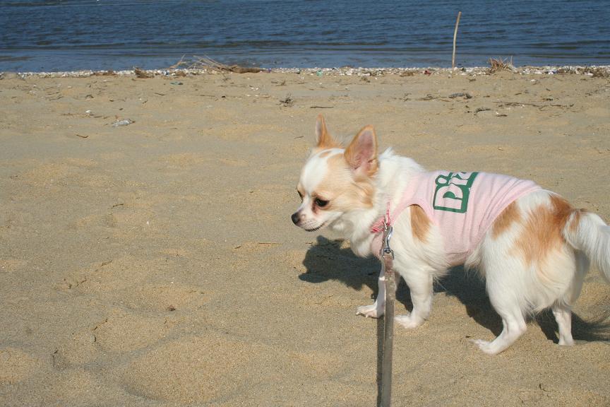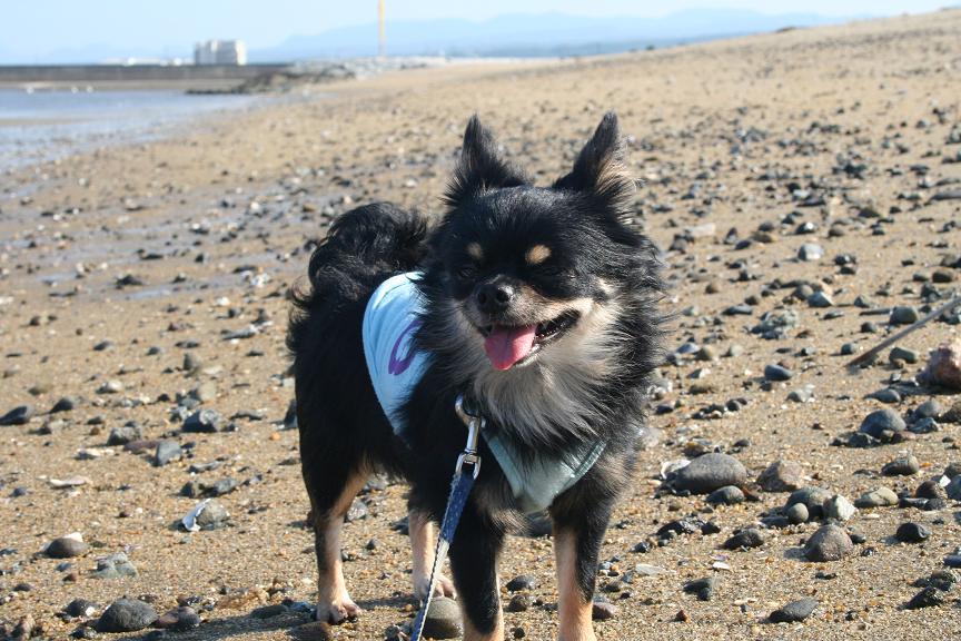 数日前に、「男前★チワワ」のチョコくんとまっきーさんが浜辺のお散歩をされてるのを拝見して、我が家も(ってもtonoは不在)まねっこして、秋の海に行ってきました。我が家の場合は大きな道路を挟んだ向かいが既に海なんですけど、そこは岸壁なので、車で5分ほどの浜辺にいきました。いつもは散歩の嫌いなふたりなのに、秋の静かな海はさすがに気持ちよかったみたいで、大はしゃぎ!!いっぱい遊んで、いっぱい走ってくれました。