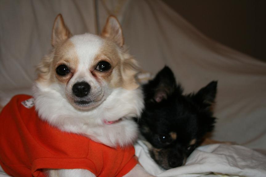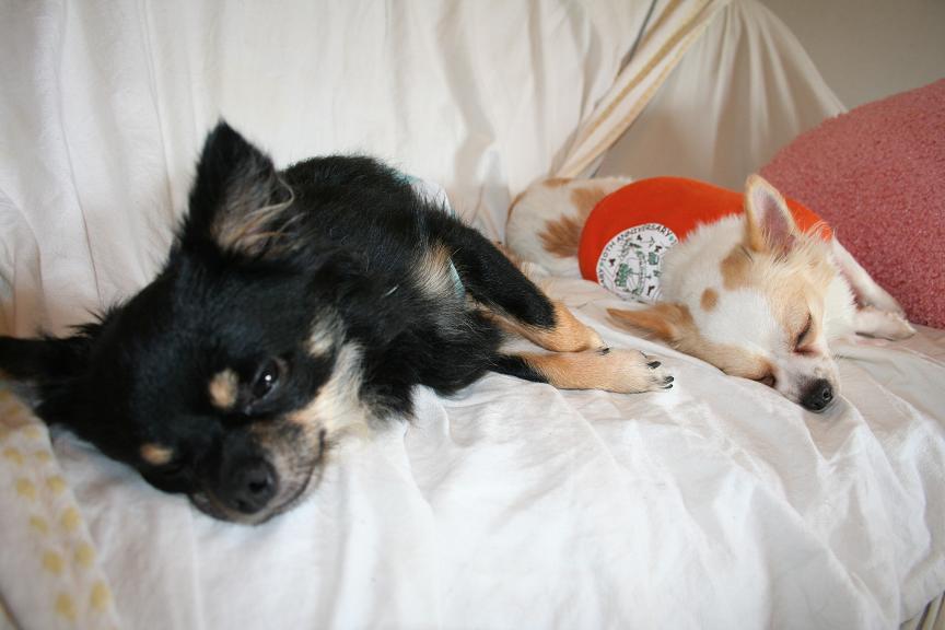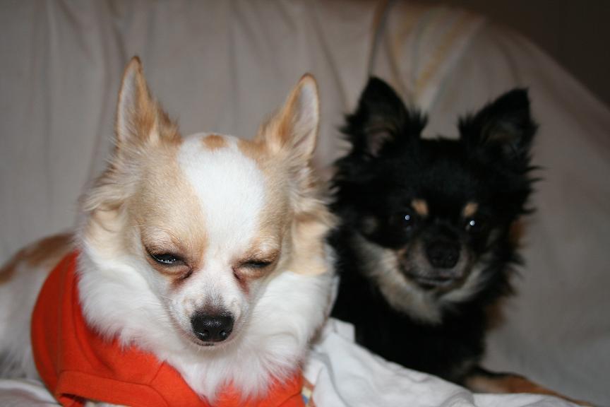 ブラタンのコパン(愛称かんちゃん)とホワイト&フォーンのコムギ。コブタぢゃありません(笑)ロングコートチワワなヤツラです★