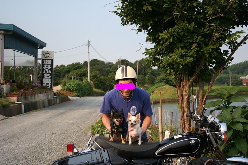 今日は長い間tonoの念願だったサイドカーでカンコムとお出かけしました!と言っても二人をバイクに乗せるのは初めてだったので、自宅の駐車場で一先ず練習。二人とも心配してたほど恐がったりもせず、どちらかと言うと興味津々!!という訳で、サイドカーにブー(私)フー(かん)ウー(コム)を乗せ、いざ「城井(きい)ふるさと村へ出発!!自宅からほど近いここは、前が湖、後ろは山。その日に採れた卵で作るプリンやロールケーキが名物の所。他にもジェラードや、産直野菜、勿論おいしい卵の販売もしているし、バーべキュー施設も完備されています。ロールケーキとプリンはすでに美味しさ確認済みの私達は「さくらたまご」味と「ショコラ」味のジェラードを頂きました!!