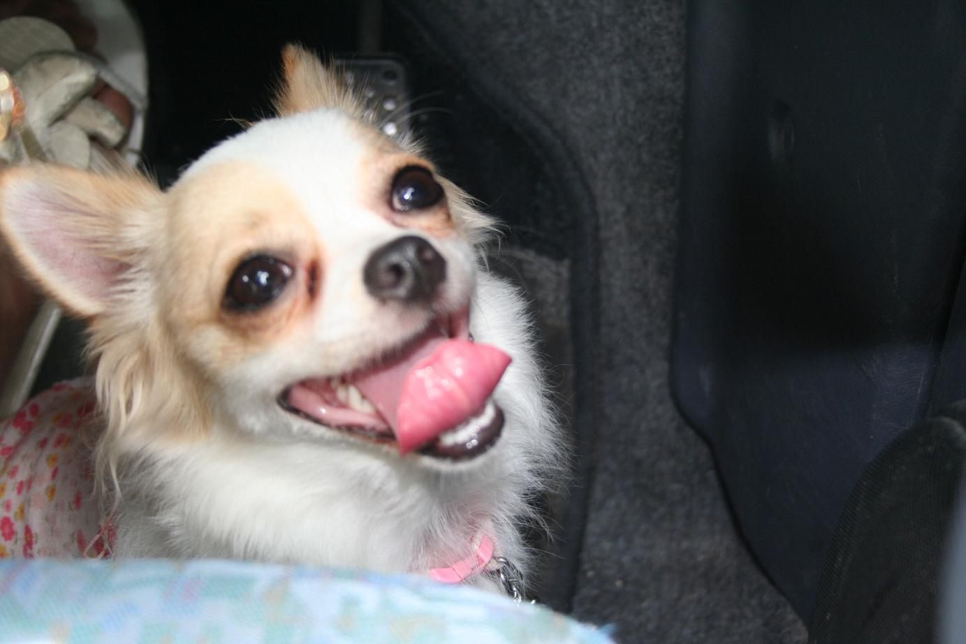 は~は~言っちゃってるし、チビッ子達に振り回されるカンチンとコムチンも大変だけど、遊びたいのにうまく遊べないチビッ子たちにも悪い気がしちゃって。。。ホントは波打ち際で遊んだりさせてあげたかったんだけど。。。まあ、また人の少ない、比較的涼しい時間に連れて行こうと思います。という訳で帰りの車内でパチリッ★