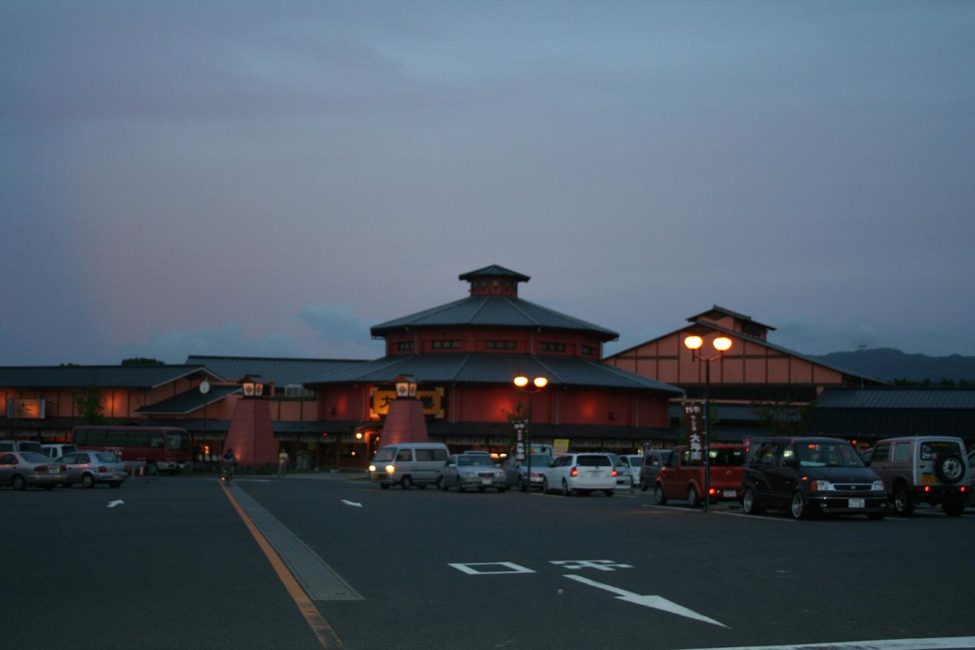 イベント会場前の温泉施設。「千と千尋・・・」のような佇まい。