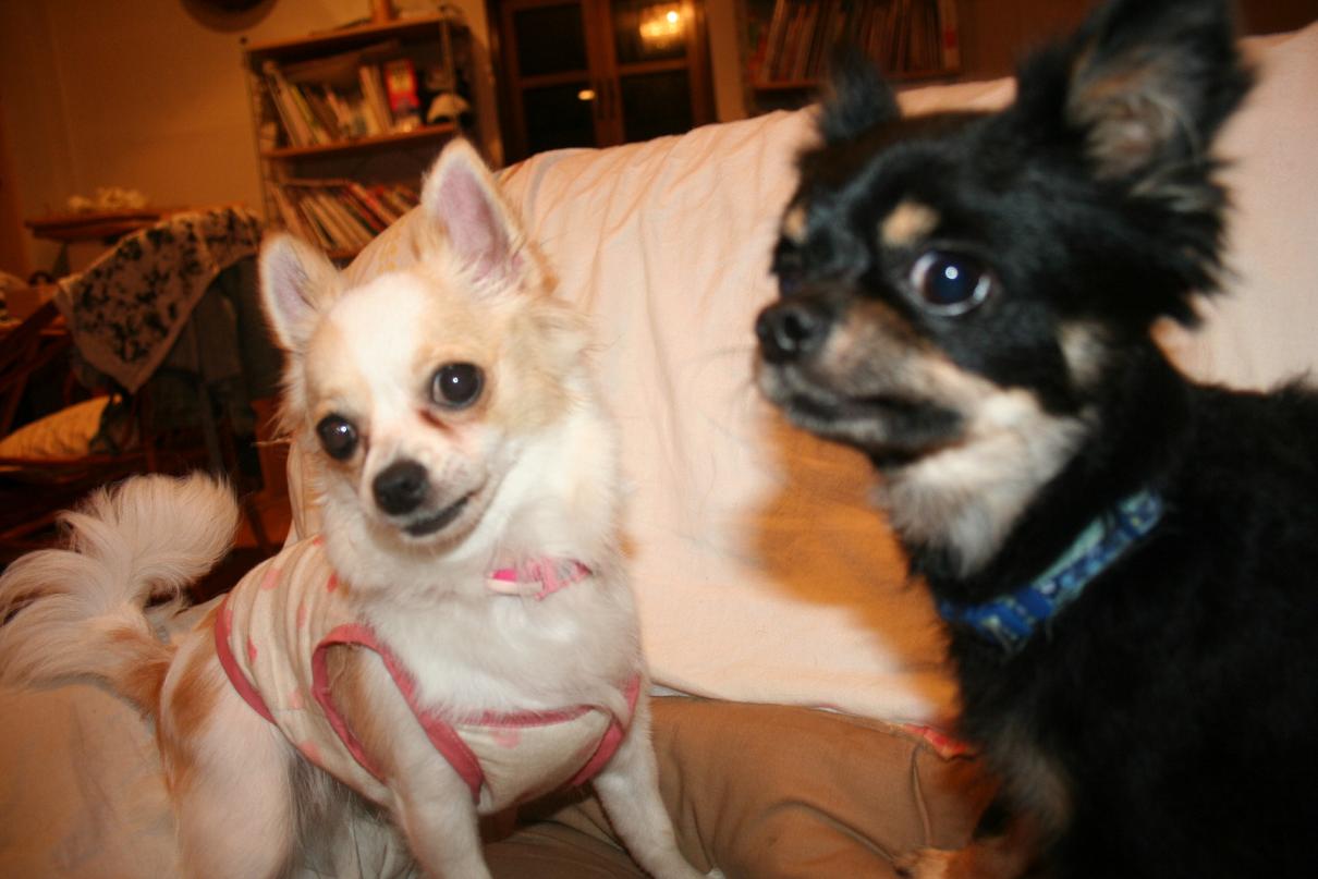 ブラタンのコパン(愛称かんちゃん)とホワイト&フォーンのコムギ。コブタぢゃありません(笑)ロングコートチワワなヤツラです★