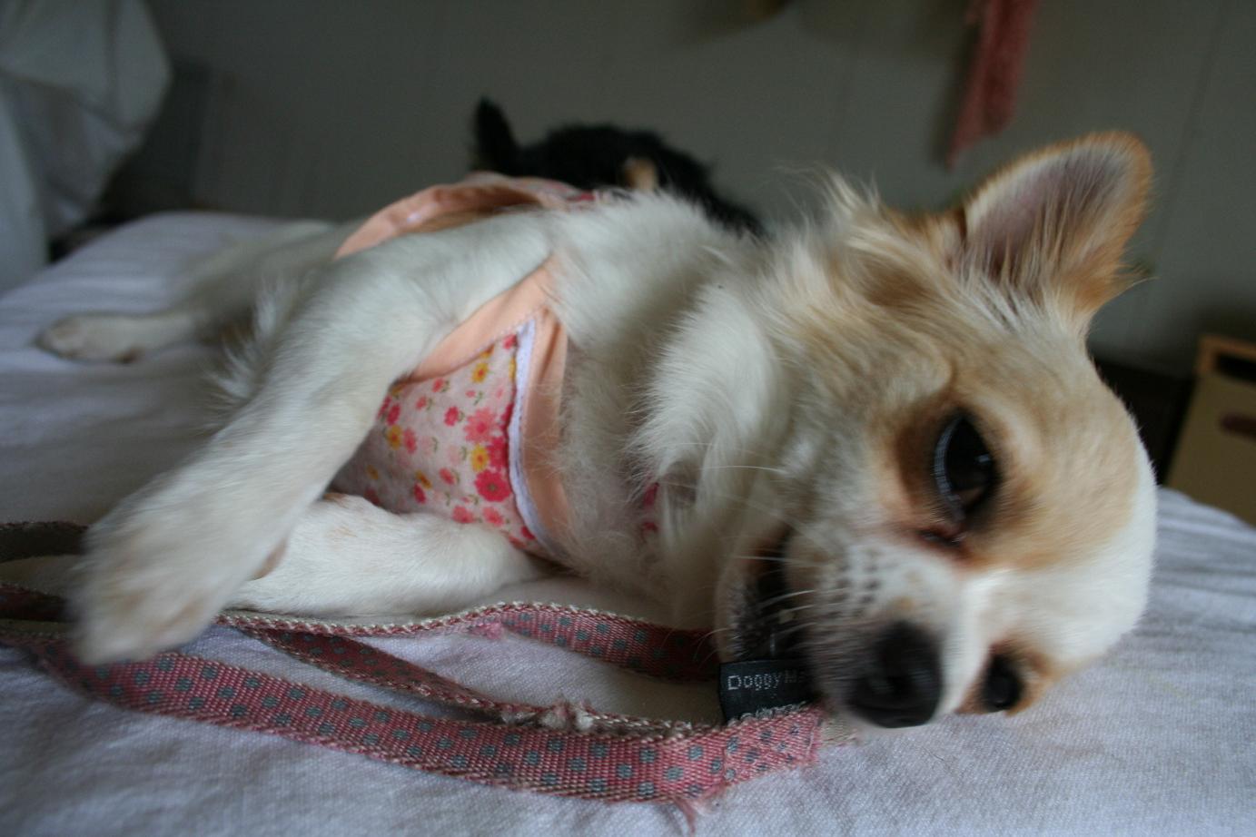 腹いせにリードをカミカミするコムちん。きっとみなさんトコは大人しゅうにさせてくれるのでしょうね。。。比較的かんちゃんはこの類が大丈夫なんですよ~。肝はコマイけど(笑)