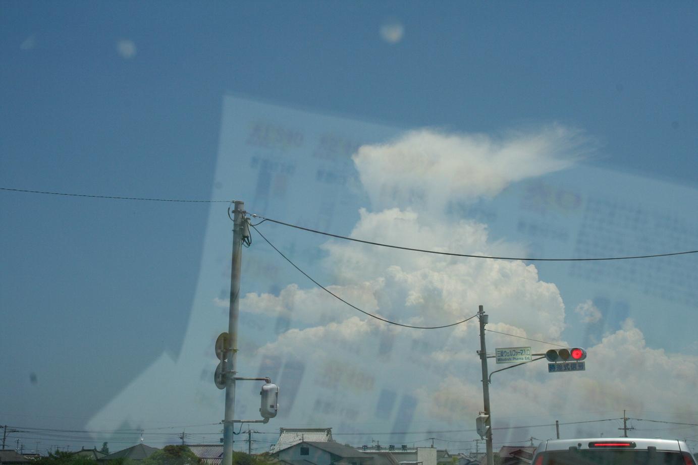 関係ないけど、昨日の福岡地方の空。まるでウサギがピョンピョンしてるみたいで可愛かったので、あわてて車内からパチリしました。携帯の広告が写りこんで、見にくいですけど。。。