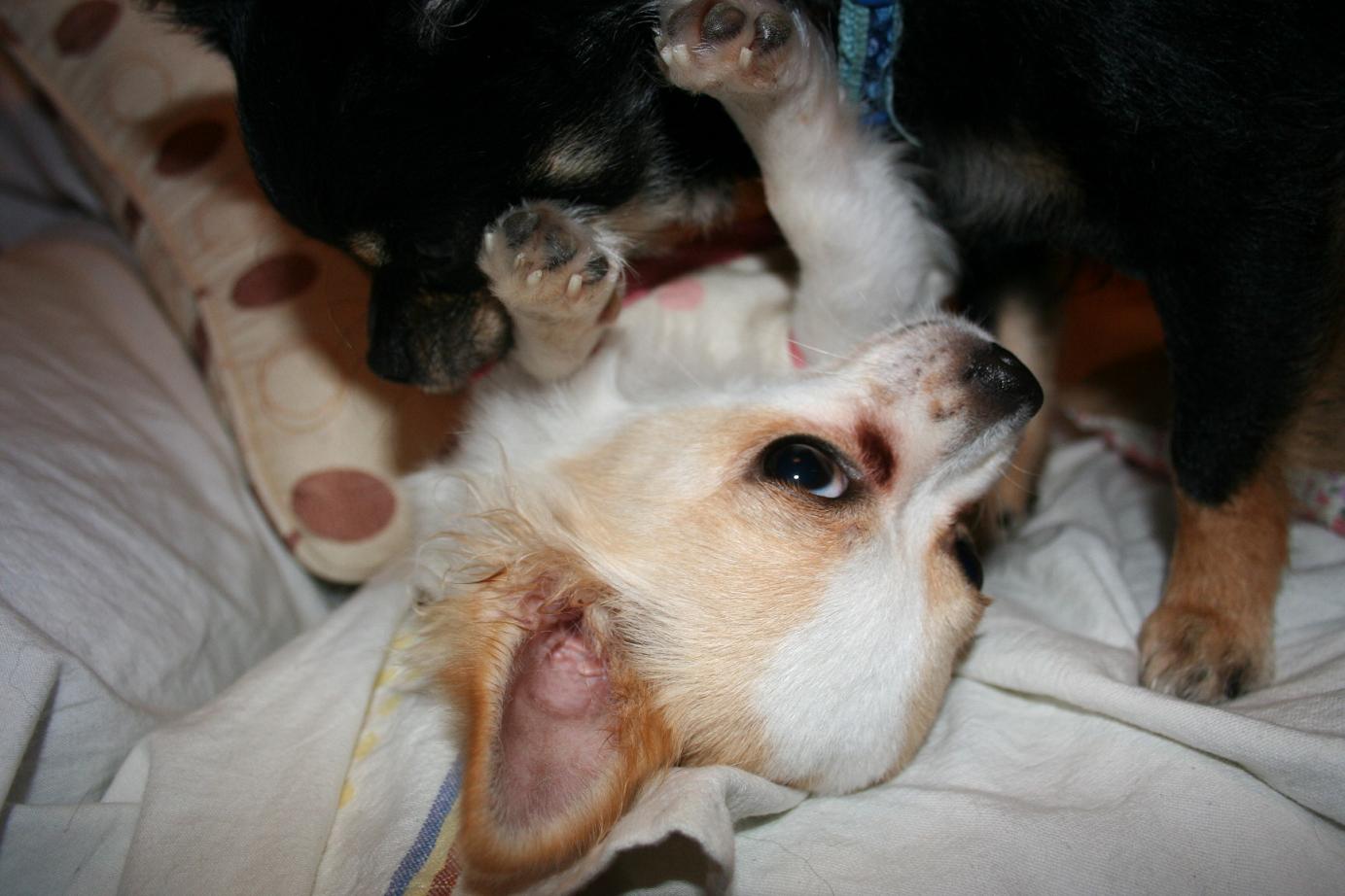 ブラタンのコパン(愛称かんちゃん)とホワイト&フォーンのコムギ。コブタぢゃありません(笑)ロングコートチワワなヤツラです★