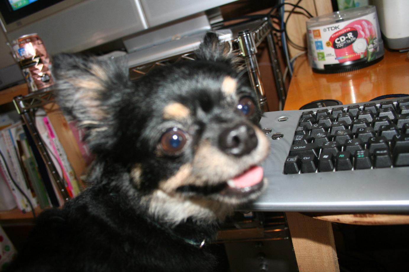 しかし、食べ終わったらPC触る私の腿の上。